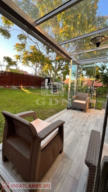 A nappaliból egy 10 m2-es terasz nyílik, amelyet télikert-szerűen beüvegeztek.