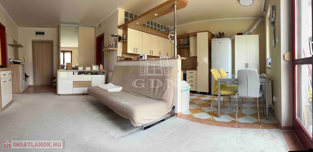 XV. kerületben a Rákos úton, kertre néző és közvetlen kertkapcsolattal rendelkező, 65 m2-es, 2 hálószobás + amerikai konyhás nappalis lakás eladó!