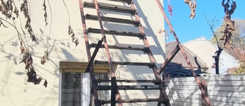 A fafödémes tetőtér nincs beépítve és egy külső lépcsőn megközelíthető.