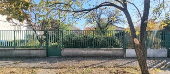 A szabályos téglalap alakú telken gyümölcsfák, ásott kút és 2 felépítmény (tároló és a háztól független fedett terasz) található, ezek igény szerint átalakíthatók.