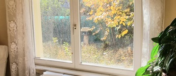 Az ablakok egy része korábban műanyagra lett cserélve, de nagyrészük az eredeti fa.