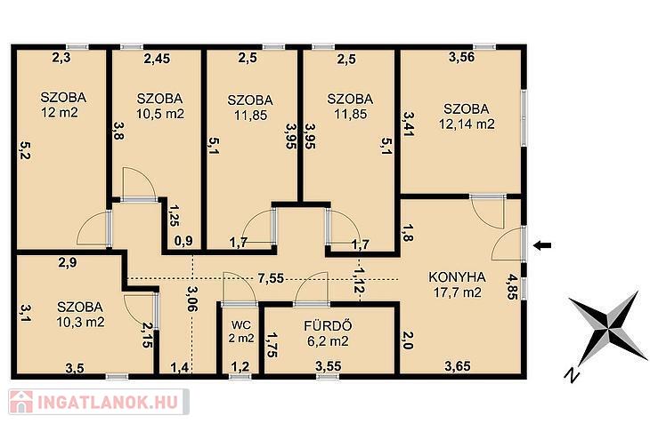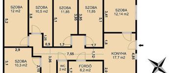 6 szoba, konyha, fürdőszoba káddal és zuhanyzóval és egy plusz mosdó lett kialakítva. 2 szoba gipszkartonnal van leválasztva, így könnyen visszanyitható a tágasabb konyha és a nappali.