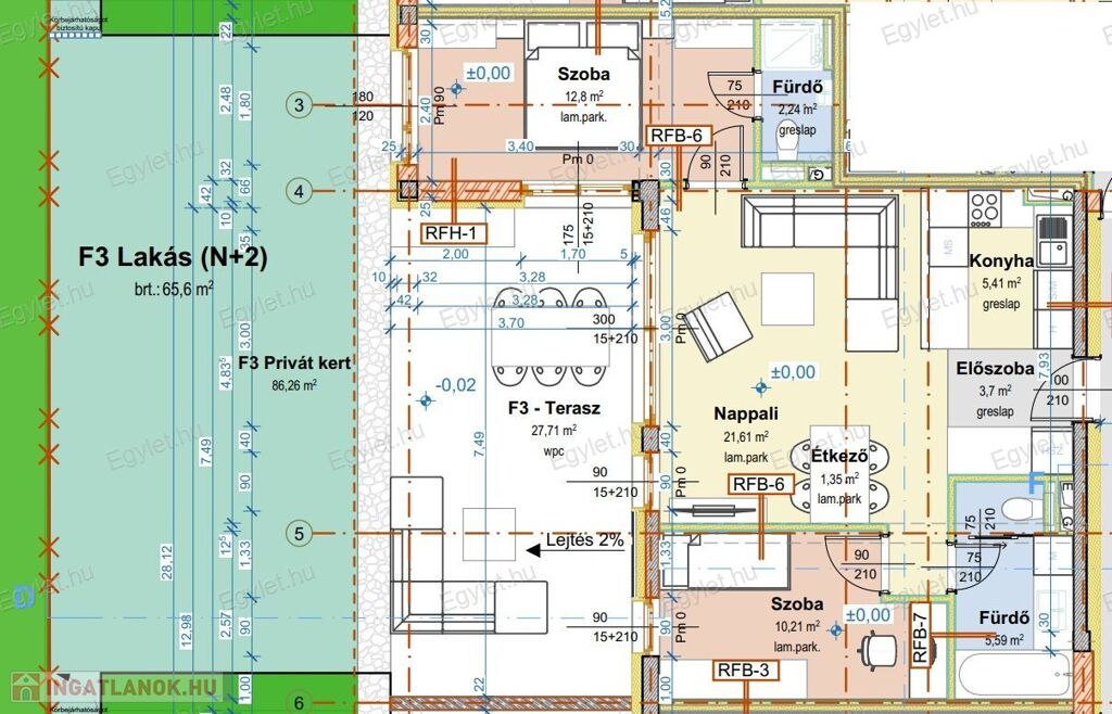 A lakás nettó mérete terasz nélkül: 63 nm.