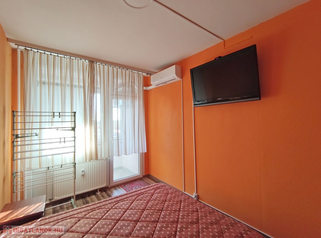 A bejárati ajtón belépve a vinyl burkolatú előszobában közvetlenül jobb kéz felől az új, modern, minőségi parkettával burkolt, tágas, világos, parkra néző, 18,4 nm-es, műanyag ablakos, redőnyös, új, minőségi LG márkájú klímával szerelt nappaliba jutunk. A nappaliban vadonatúj, asztalos által egyedileg gyártott, esztétikus, faltól-falig, valamint a mennyezetig beépített szekrénysor került beépítésre. A szekrénysor beépítésével, a nappaliból a hálóba nyíló ajtó lezárásra került. Az „L” alakú közlekedőben szemben nyílik a 12,8 nm-es, szintén új, minőségi parketta burkolatú, új, minőségi HISENSE márkájú klímával szerelt, műanyag ablakos, szúnyoghálós és redőnyös szoba, és ebből a szobából tudunk a 10,5 nm-es, szintén új, parkettás, műanyag ablakos hálószobába jutni, mely a 2,8 nm-es, redőnyös és szúnyoghálóval szerelt loggiában végződik. A bejárathoz visszamenve a közlekedőben balra haladva jutunk a járólapos, műanyag ablakos, redőnyös, nagyon világos 6,3 nm-es, mennyezetig érő, teljesen új, gépesített, MORA márkájú 4 gázlángos és légkeveréses, villanysűtős tűzhelyes, új gránit mosogatóval is beépített konyhába. A konyhából visszahaladva, balra találjuk a külön nyíló, új, 3D hatású, modern csempével burkolt, közepes állapotú, 2 nm-es fürdőszobát, mellette pedig a szintén minden elemében új, járólapos toalettet.