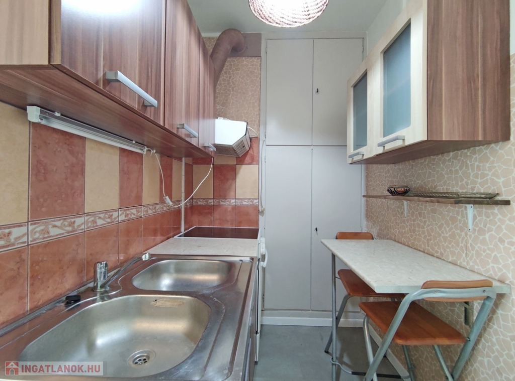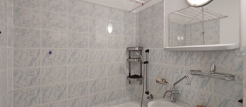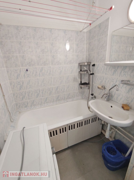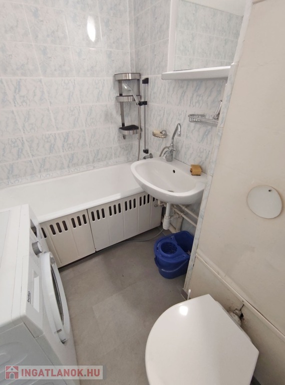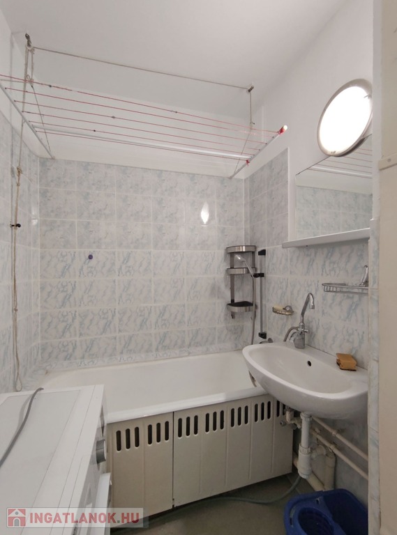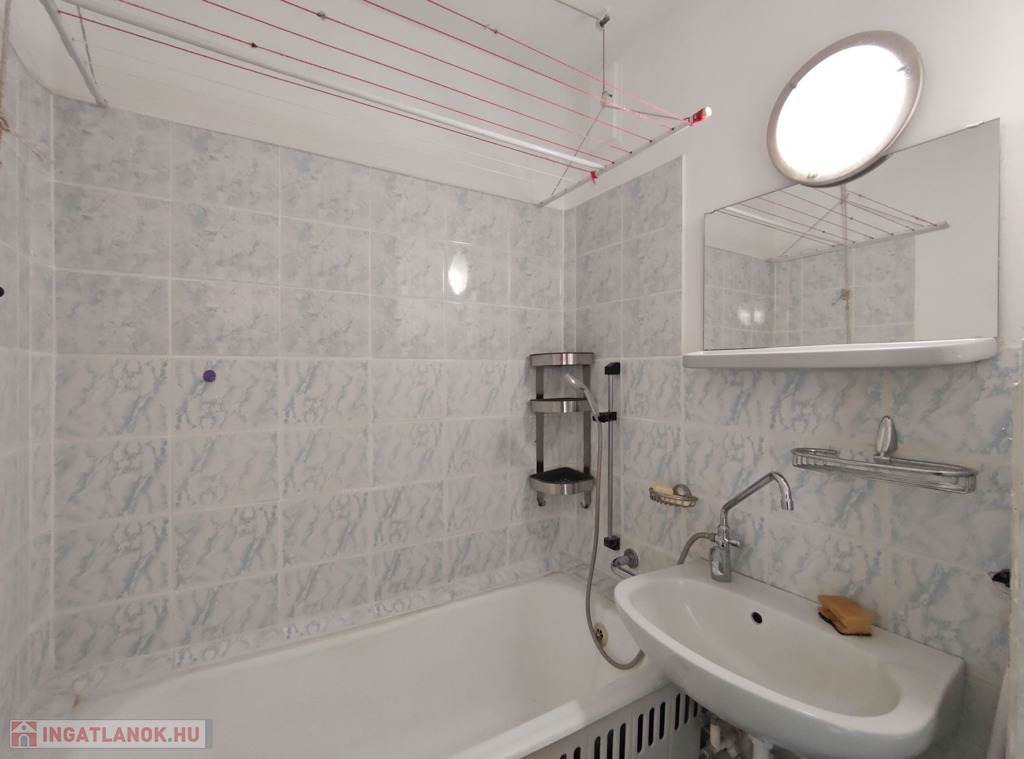 Közvetlenül a konyha mellett találjuk a kádas 3 nm-es fürdőszobát, ami magába foglalja a toalettet is, megkímélt burkolatokkal elátott, de igény esetén felújításra szorul.
