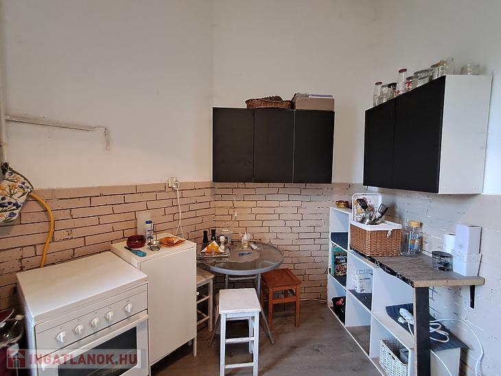 Konyha, zuhanyzós fürdőszoba és galériázott tágas szoba áll rendelkezésre. A nyílászárók műanyagok, hőszigeteltek. A fűtést gázkonvektor látja el, a meleg vizet pedig bojler biztosítja. A fürdőszoba járólapos a többi helyiség pedig laminált parkettás. A konyhabútor a vételár részét képezi. Tartozik a lakáshoz tároló a pincében.