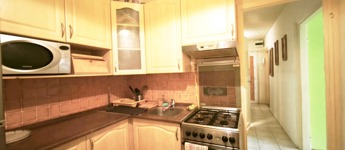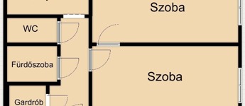 Belépve a járólappal burkolt közlekedőből balra két egymásba nyíló világos tágas kényelmes szoba található, a hálószobában klíma teszi kellemesé a hőmérsékletet nyáron, mivel egybe nyílnak a szobák ezért lehűti mindkettőt. A szobákat laminált parkettával burkolták. Szemben nyílik a kádas fürdőszoba és külön helyiségben a toalett. Tovább növeli a kényelmet a gardrób szoba ami a bejárati ajtó mellett közvetlenül ad teret a család dolgainak az elhelyezésére. Szemben a közlekedő végéből nyílik a tágas, ablakos , gépesített konyha amelyben egy étkező sarok kialakítására is van lehetőség. A nyílászárókat műanyagra cserélték.