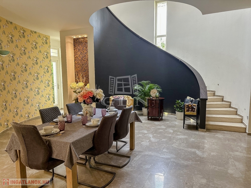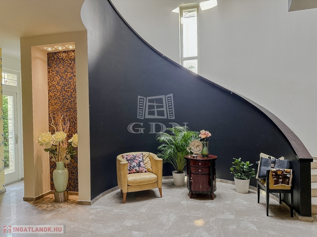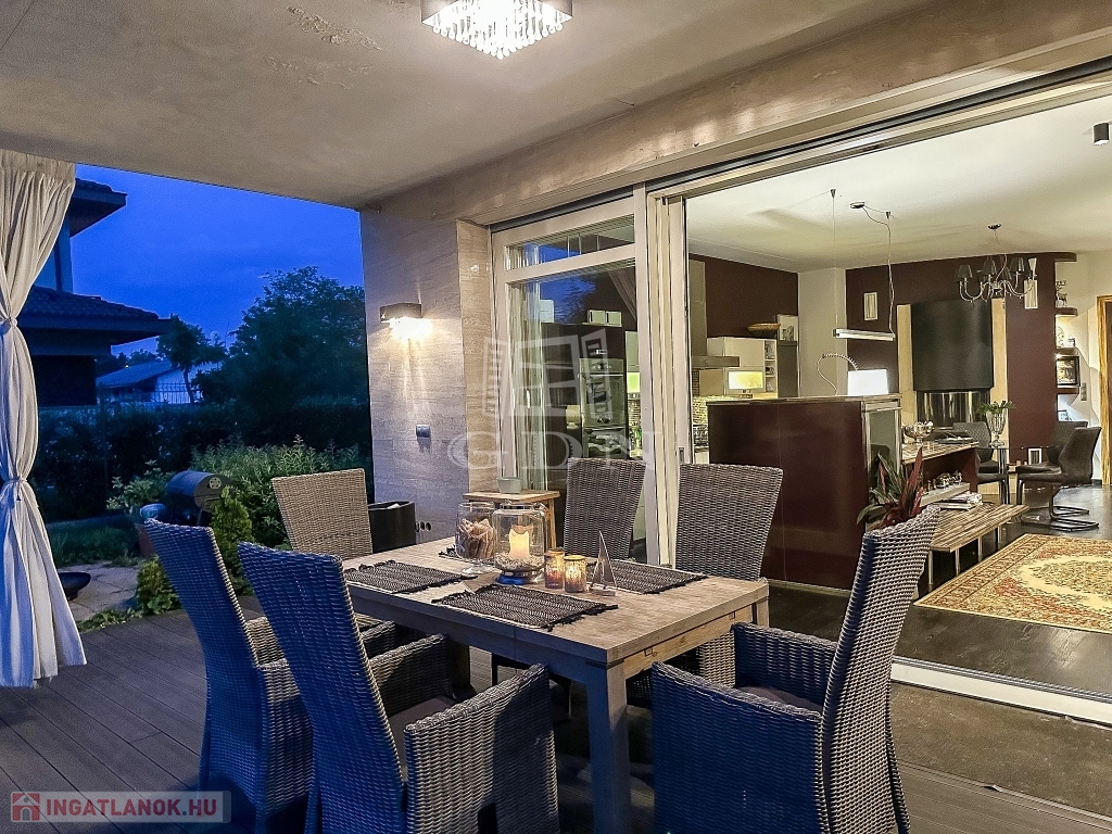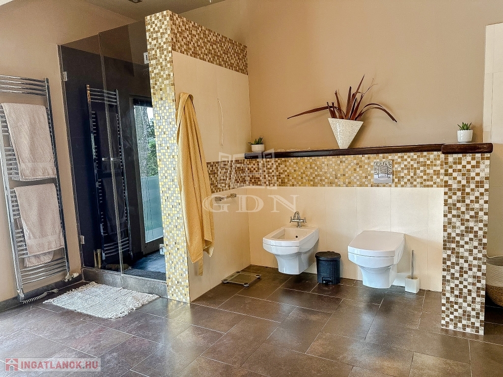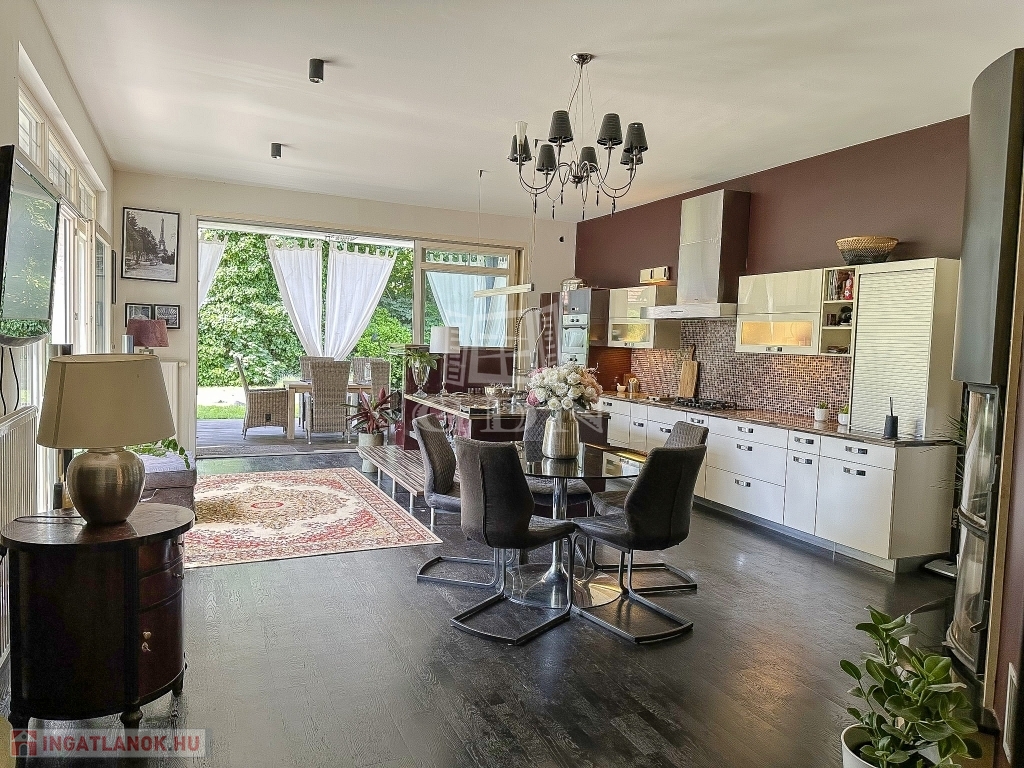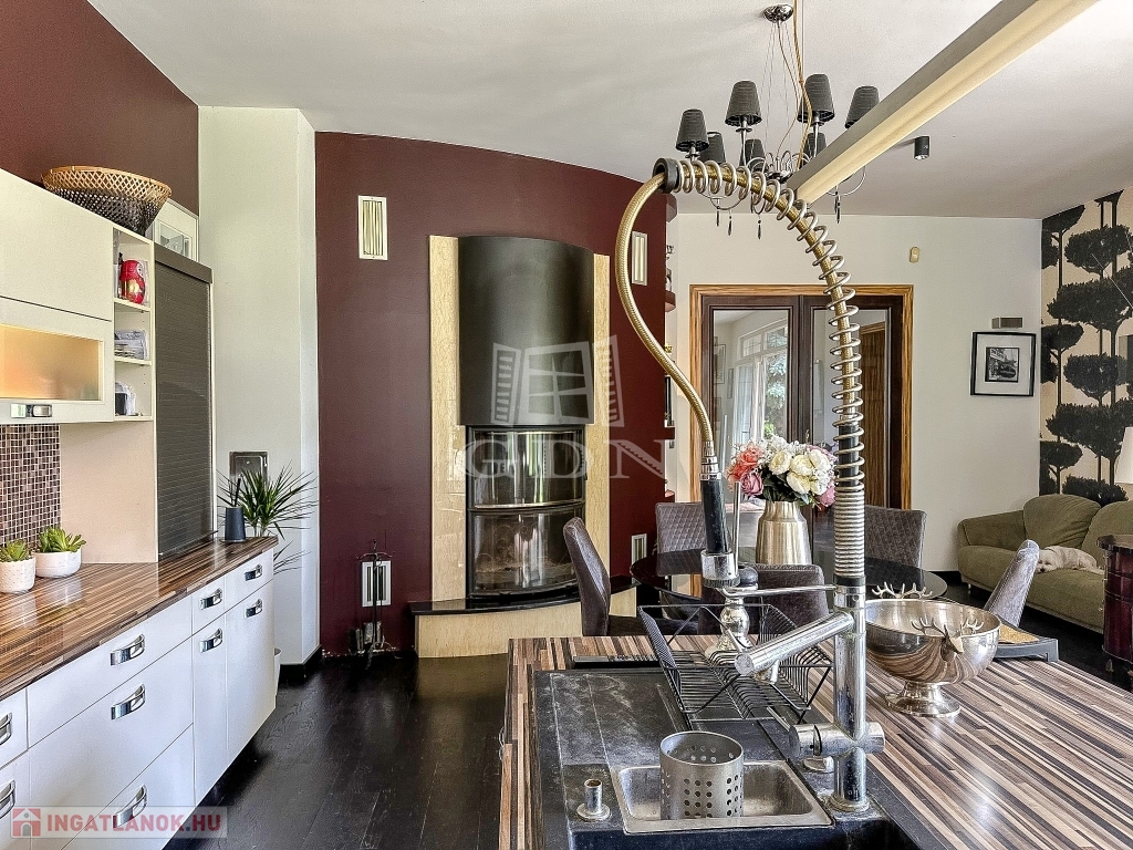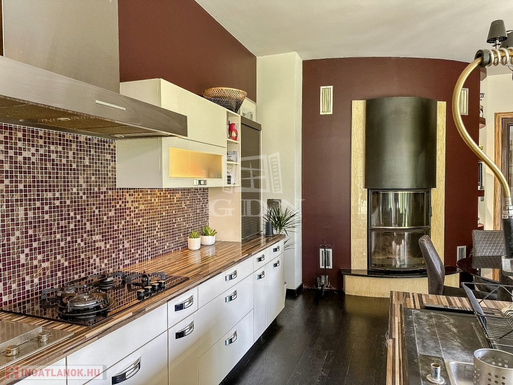 Az ingatlant belső építész tervezte, egyedi kialakítású, minden igényt kielégít 45 nm-es kertkapcsolatos konyhával, házkapcsolatos garázzsal, mosókonyhával, gardróbbal.