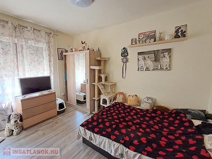 Az épület belső kétszintes, a földszinten helyezkedik el az előszoba, 2 szoba, konyha, kamra, a fürdőszoba és a mellékhelyiség. Az emeleten található szintén 2 szoba, előszoba, fürdőszoba, mellékhelyiség, és egy étkezős konyha. A ház fűtését kombicirkó szolgáltatja. Az emeleti rész 2022-ben lett felújítva. A felújítás érintette a vízvezetékeket, burkolatokat, radiátorokat és a nyílászárókat. Az alsó szint műszakilag és esztétikailag is felújítandó. Jelenleg a két lakrész egybe van nyitva, de könnyen két generációssá alakítható.