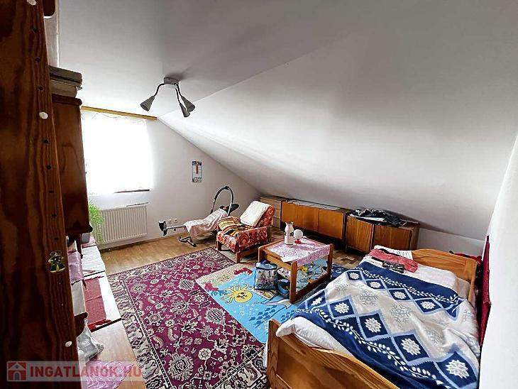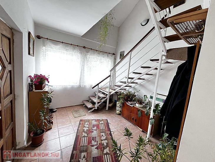 Az épület tégla és körbejárható. A földszinten: előszoba, 2 szoba, konyha, kamra fürdőszoba és mellékhelyiség. Emeleten: 3 szoba, fürdőszoba, étkező, konyha, spejz. A ház fűtése kombi cirkóval megoldott. Az emelet 2007-ben épült a házra, a tetőszerkezet és a kazán (kombi cirko) 2008-ban lett kicserélve, kőzetgyapot szigetelést kapott. Az alsó szint műszakilag eredeti állapotában van. A telek 538 m2 nagy udvarral, 16 m2 terasszal és fészerrel rendelkezik.
