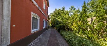 Az emeleten az utcafront felé a hálószobából nyílik egy 15 m2-es terasz, valamint a műhely mögött is található 12 m2 teraszrész.