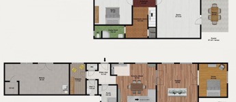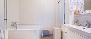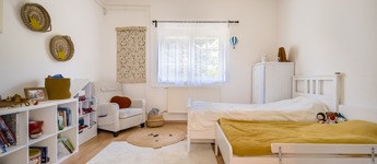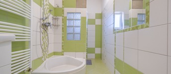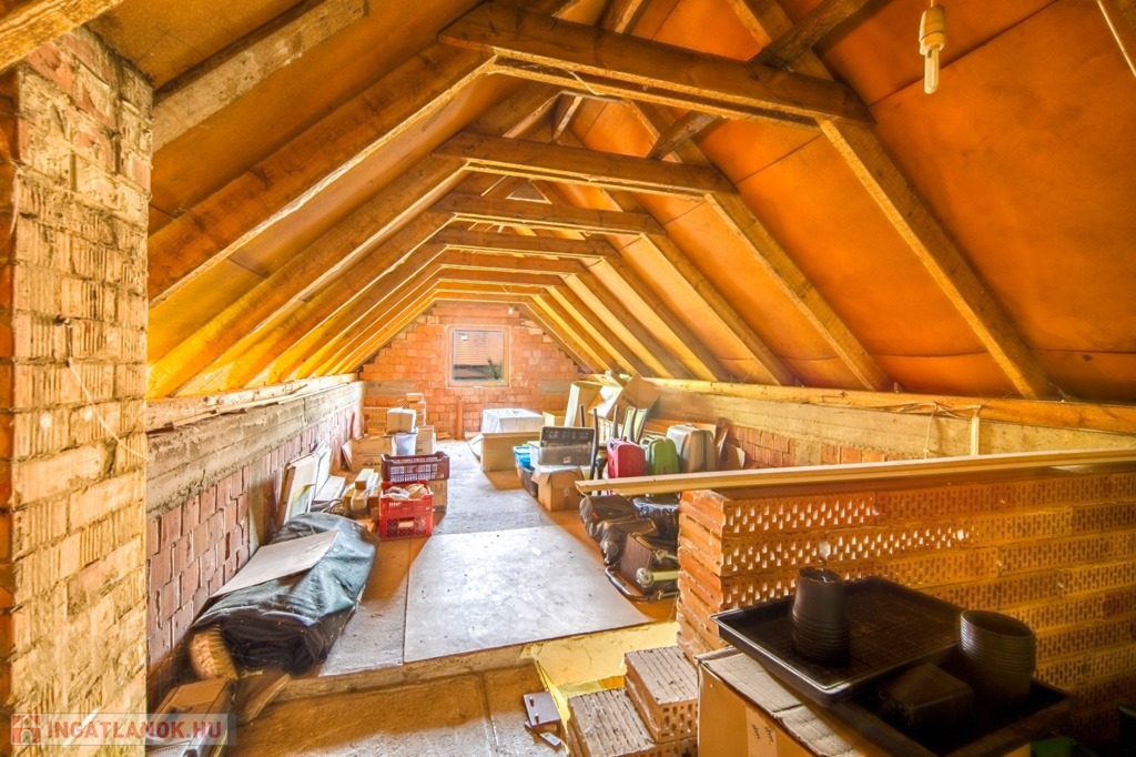 Az alsó és a felső szinten is teljes értékű fürdőszoba található, lent külön, fent egy helyiségben a WC-vel. Lent található háztartási helyiség is. A 4 hálóból egy dolgozó, 3 pedig nagy méretű, teljes értékű, de a dolgozó felől található a műhely, mely irányába könnyen bővíthető a szoba, így a ház mind az alsó, mind a felső szinten.
