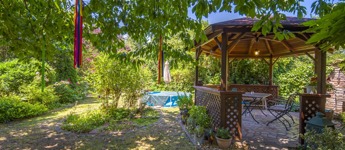 A műhely átalakítható, többfunkciósként használható: garázsként vagy további szobák és vizes helyiség kialakítására is van lehetőség, mivel a ház folytatólagos részénél van. A telken rengeteg fa és virág mellett egy 10 m2-es szaletli is található.
