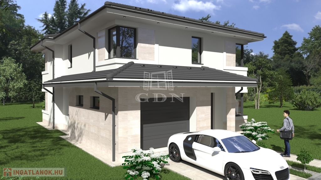A ház nettó 166,21 m² lakótérrel és 21,59 m²-es garázzsal rendelkezik, kétszintes kialakítású, modern megjelenésű és átgondolt alaprajzú.
