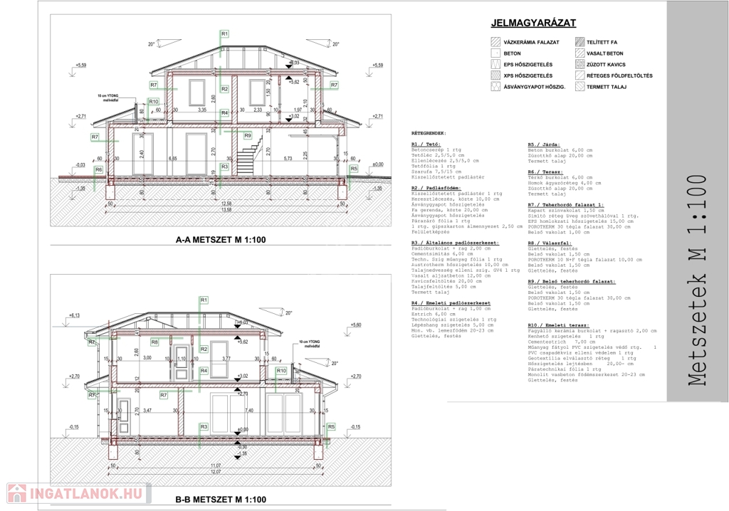 Az épület Porotherm 30-as téglából készült, 15 cm EPS homlokzati hőszigeteléssel. A padlószerkezetbe 10 cm lépésálló hőszigetelés, a födémbe 30 cm ásványgyapot került beépítésre. A ház monolit vasbeton födémmel épült, amely kiemelkedő statikai és akusztikai tulajdonságokat biztosít. A nyílászárók 6 légkamrás, háromrétegű üvegezésűek, alumínium, elektromos redőnyökkel szerelve.