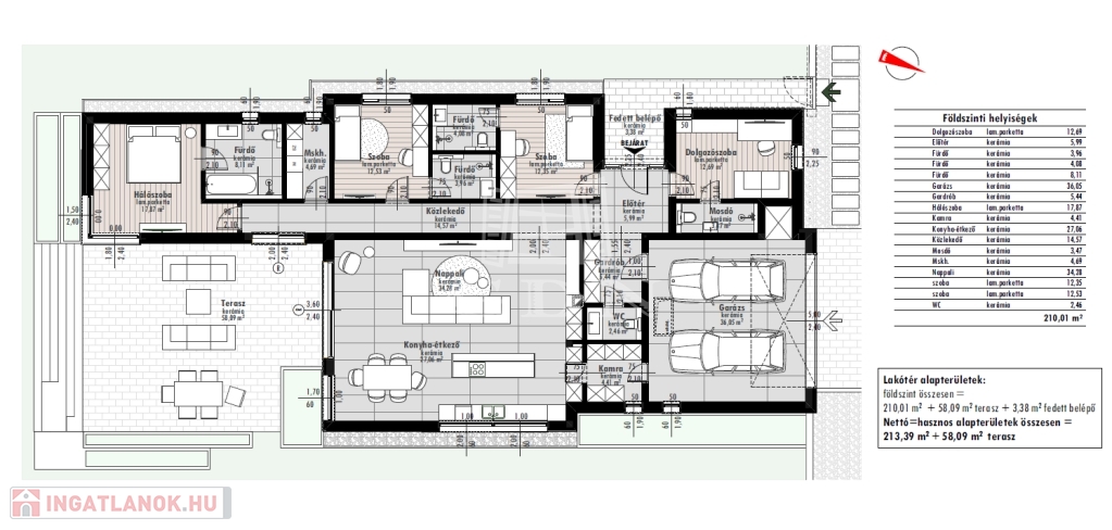 Belső burkolatok: laminált- és Gres burkolatokkal készülnek a belső terek. A ház teljes belső