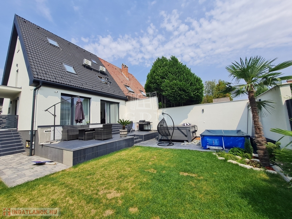 Az udvar parkosított, ÖNTÖZŐ rendszerrel szerelt. A hátsó kert privát, kulturált, életteret biztosít.
