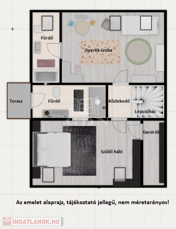 - 6,3 m² (3,78 m²) WC + kádas, gyerek fürdőszoba,