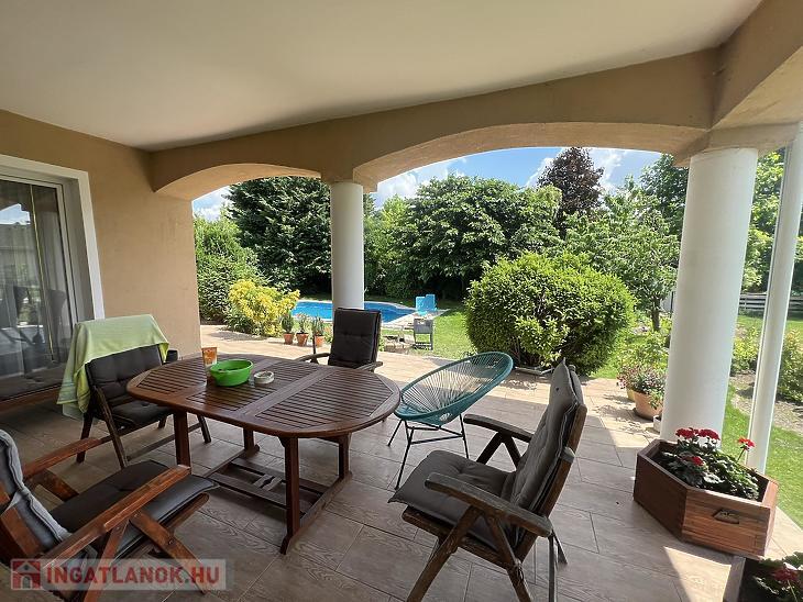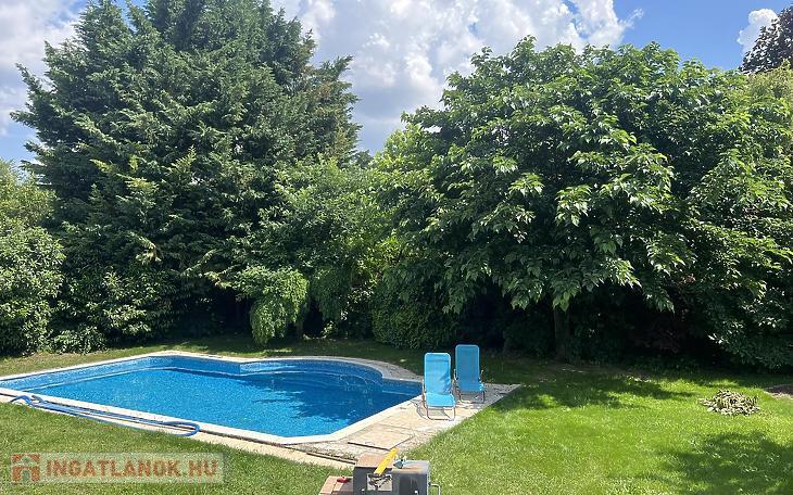 A kert rendezett, parkosított, fúrt kút és arról működtetett öntözőrendszer is rendelkezésünkre áll, valamint egy 70 m³ -es épített medence került kialakításra.