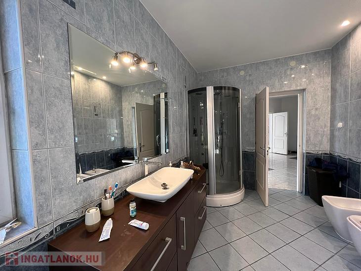 Burkolatok szép állapotúak. A földszinti szoba laminált parkettás, a többi helyiség járólappal burkolt. Az emeleten két szoba laminált parkettás, egy szoba hajópadlós, egy szoba szőnyeggel borított, a fürdőszoba és a mosókonyha járólappal burkolt. Az emeleten található szobákban inverteres klíma került felhelyezésre. A ház riasztórendszerrel felszerelt. A nagy kapu és a garázs ajtó automatán vezérelt.