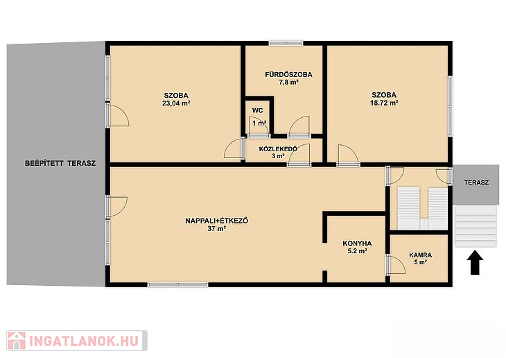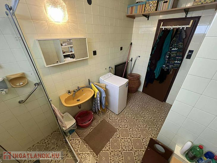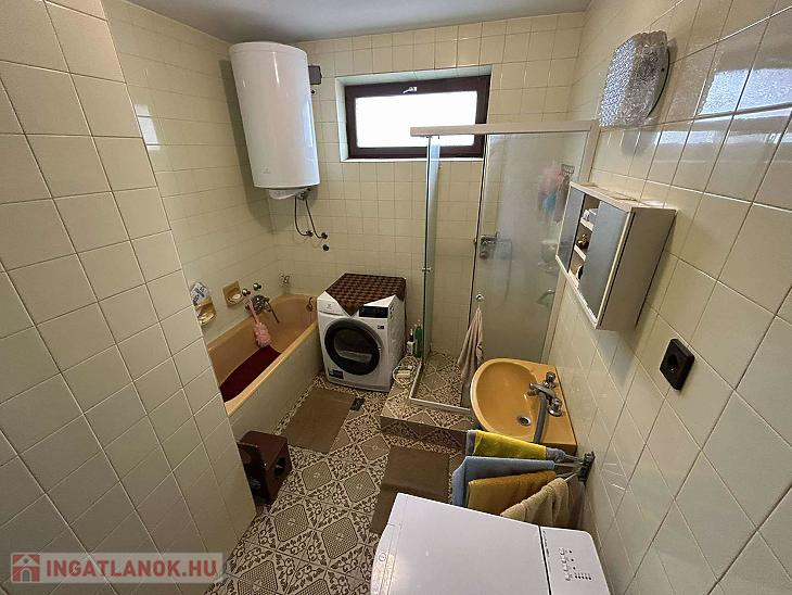 ELRENDEZÉS: 2 szoba, étkezős nappali, konyha, zuhanyzós + kádas fürdőszoba, mellékhelyiség, beépített terasz, kamra.
