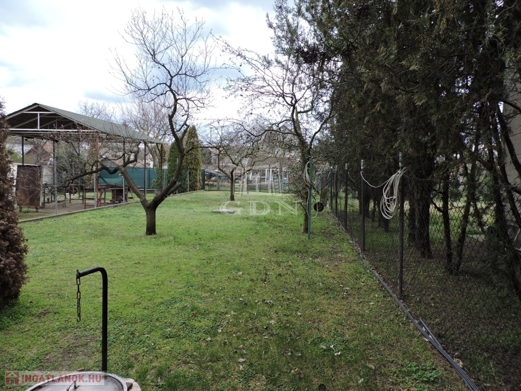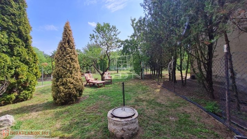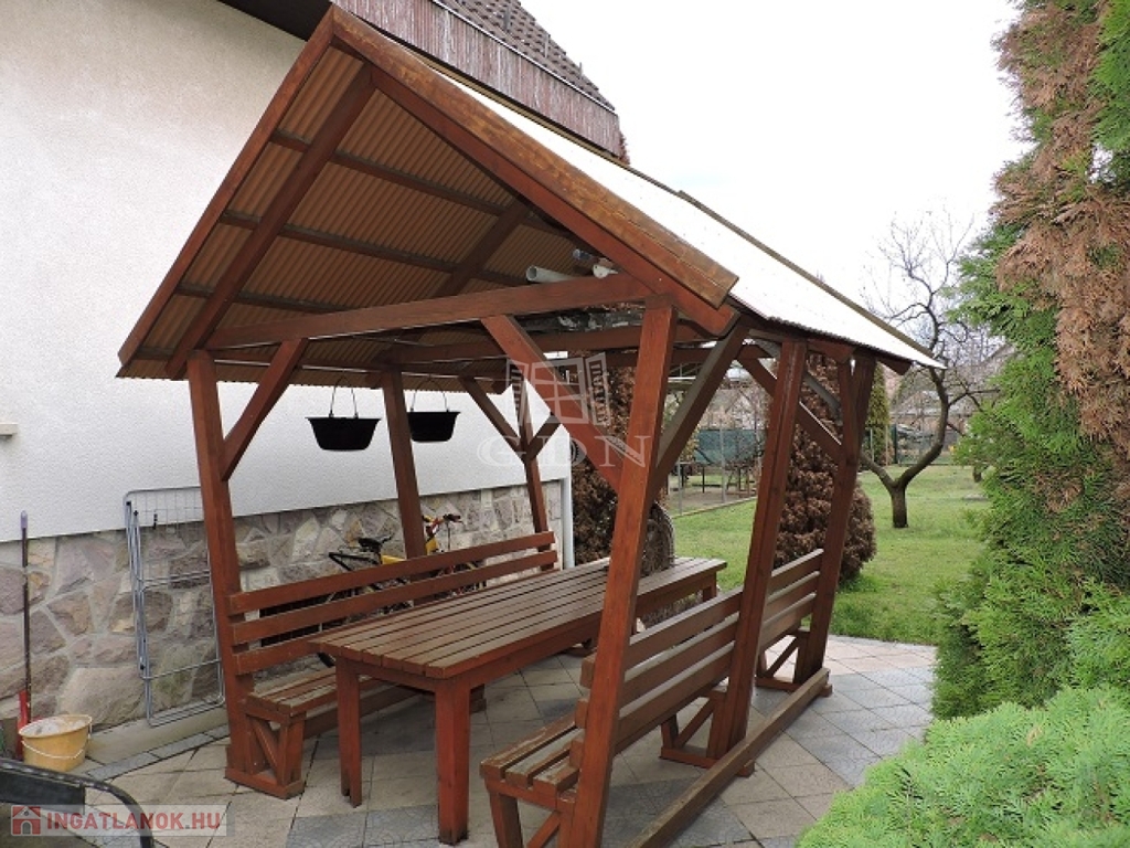 A parkosított, gondozott kertben, találunk egy fedett kiülőt, bográcsolási lehetőséget, gyümölcsfákat. A locsolással sem lesz probléma.