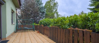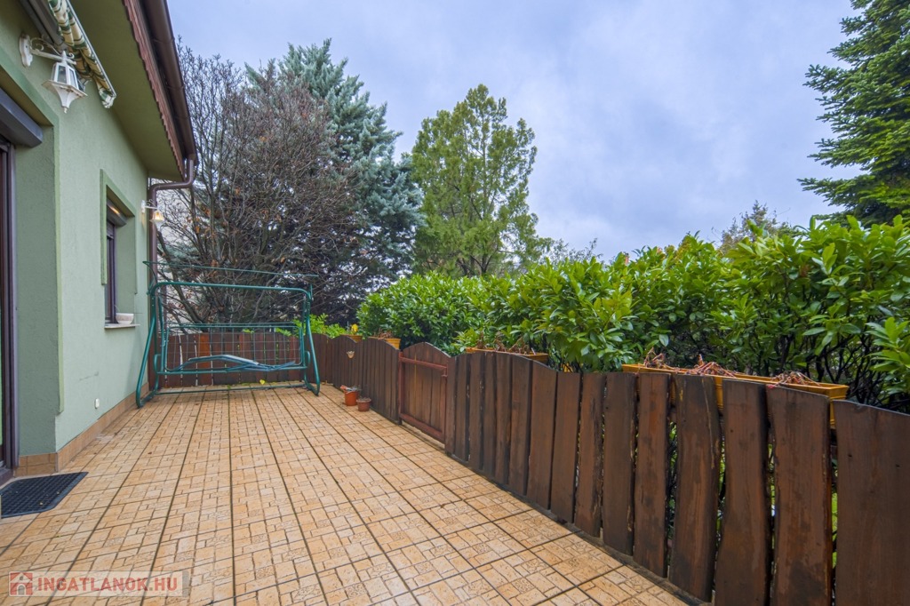 A telek 364 m2, a teraszról és a pincéből is közvetlen kapcsolattal, a ház mellett a dupla állásos garázson kívül egy kültéri beálló is használható parkolásra. A kertben öntözőrendszer került kialakításra.