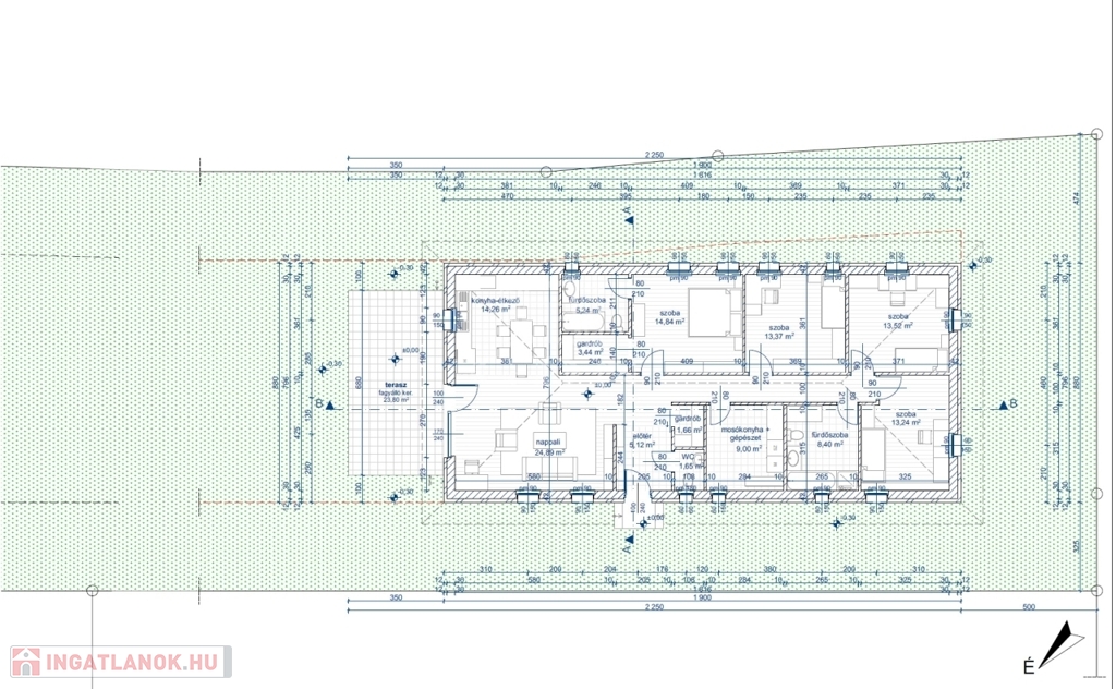 A ház praktikus elrendezésének köszönhetően négy külön nyíló szoba és egy tágas amerikai konyhás nappali biztosítja a kényelmes mindennapokat, miközben a korszerű műszaki tartalom alacsony fenntartási költségeket garantál.