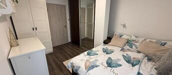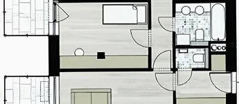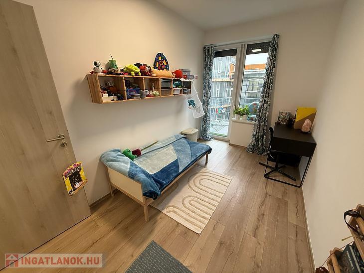 Amerikai konyhás nappali + étkező, 2+1 fél szoba, kádas fürdőszoba + wc, külön wc, közlekedő, előszoba, 2 darab 12 nm-es erkély.