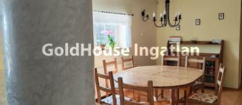 Az újonnan épült ház (lásd a fotókon) egy világos, kertkapcsolatos alagsori részén egy előszoba, egy kamra, egy tágas világos konyhaa -tágas étkezővel, egy 16 nm alapterületű szoba -elektromos kandalóval, ezenkivül itt található egy tágas fürdőszoba, és egy gépészeti helyiség.
