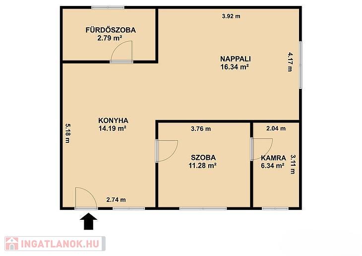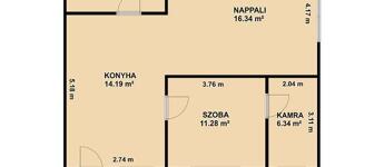 Amerikai konyhás nappali, szoba, kamra, zuhanyzós fürdőszoba + wc, előszoba.