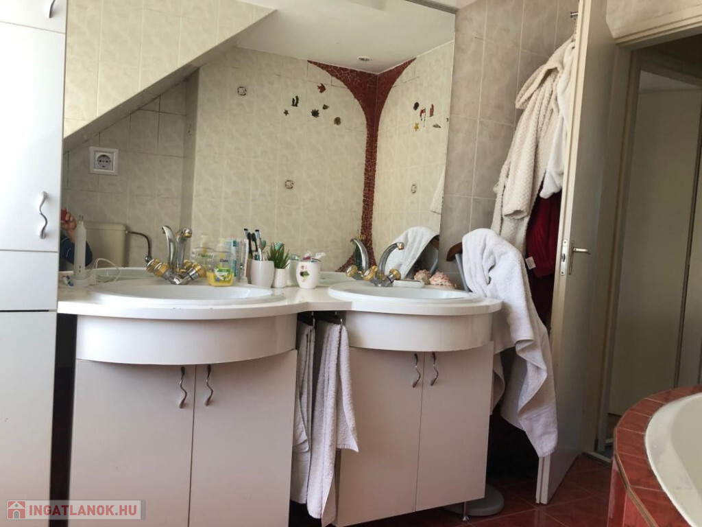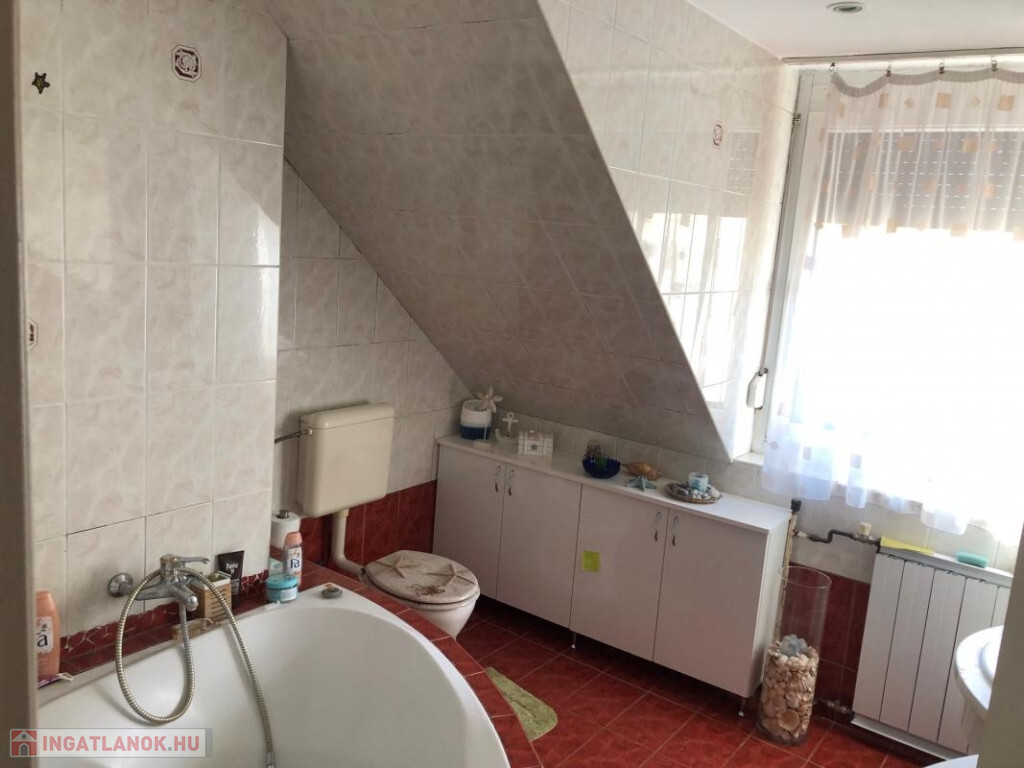 Az épület cserépfedésű, A tetőtéri ablakokat már műanyagra cserélték, a földszinten eredeti thermo üvegezésű fa nyílászárók vannak, új a biztonsági bejárati ajtó. A földszinten a mellékhelyiség a zuhanyfülkés fürdőszobától külön van, a tetőtérben a nagy sarokkádas fürdőszobában kapott helyet. A fűtést és a meleg vizet kombi cirkó gázkazán adja. A tetőtéri és a földszinti fürdőszobában radiátor van, a tőbbi helyiségben mindenhol padlófűtés adja a meleget. Két hálószoba parkettával, egy padlószőnyeggel burkolt. A közüzemi fogyasztásokat, saját fogyasztásmérők mérik!