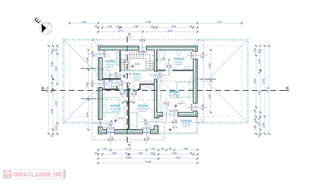 • Teljes tetőszerkezet, cserepezés, válaszfalak, lépcső, gépészeti alapszerelés