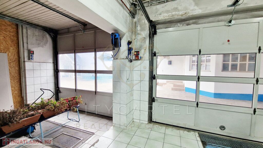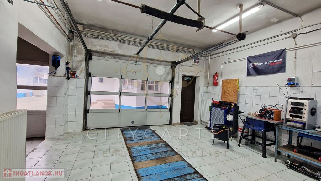A lakás mögött, de vele egybeépítve találunk egy 9 nm-es irodai részt, ami akár össze is nyitható a lakrésszel. A 84 nm-es műhely teljesen elszeparált, az iroda mögött még egy autóbeállási lehetőség. Két motoros bejárati kapu és egy személybejárat. Egy akna, küszöbemelős beálló, kéziműhely, iroda, raktár, WC, fürdő, ügyfélváró. Az áram főmérős, 3 fázisú, ev relékkel. A fűtés kondenzációs kazánról, radiátoros és hűtő-fűtő 3,5 KW-os klímával megoldott. Aknában kompresszor telepítési hely. A jó állapotú műhelyben is a riasztórendszer kiépítve.