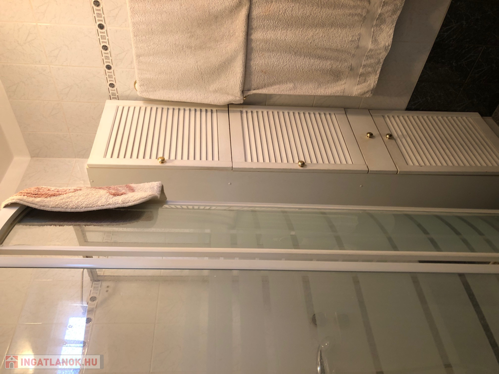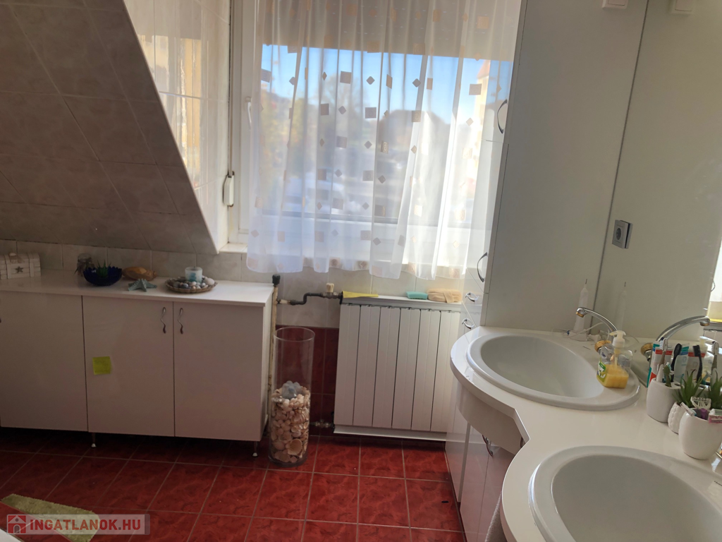 Az épület cserépfedésű, A tetőtéri ablakokat már műanyagra cserélték, a földszinten eredeti thermo üvegezésű fa nyílászárók vannak, új a biztonsági bejárati ajtó. A földszinten a mellékhelyiség a zuhanyfülkés fürdőszobától külön van, a tetőtérben a nagy sarokkádas fürdőszobában kapott helyet. A fűtést és a meleg vizet kombi cirkó gázkazán adja. A tetőtéri és a földszinti fürdőszobában radiátor van, a tőbbi helyiségben mindenhol padlófűtés adja a meleget. Két hálószoba parkettával, egy padlószőnyeggel burkolt. A közüzemi fogyasztásokat, saját fogyasztásmérők mérik!