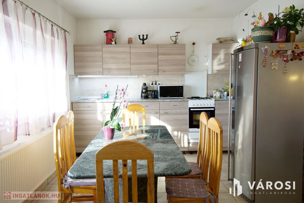 A csendes, családi házas utcában fekvő ingatlan nyugodt, zöld környezetet biztosít, ahol a pihenés és a természet közelsége a mindennapok része lehet. A tágas udvar gyermekeknek, kertészkedéshez vagy akár kisállatoknak is ideális.