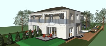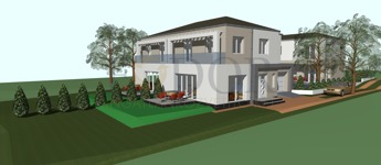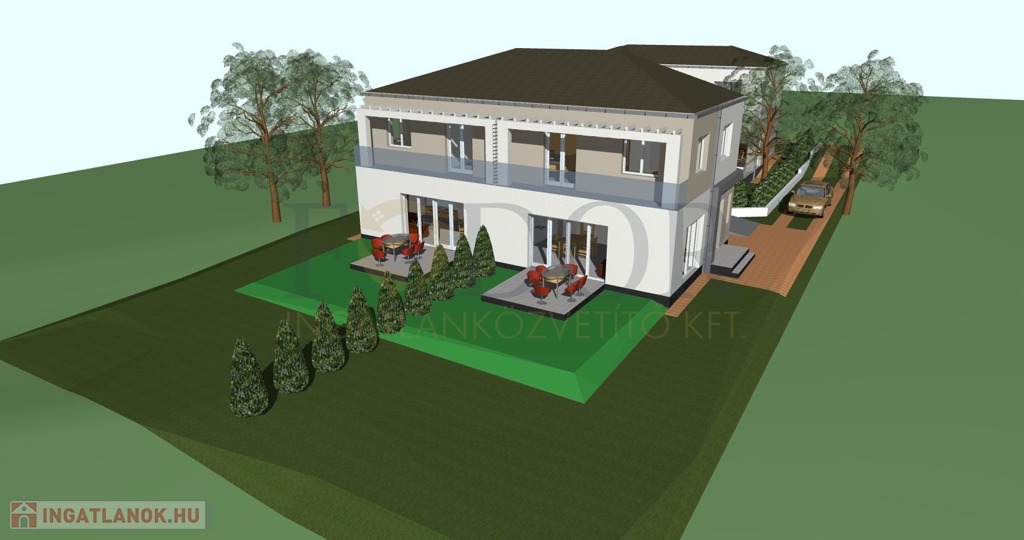 • Telekméret: Önálló családi ház 348 m², Ikerházak külön-külön: 425 m²