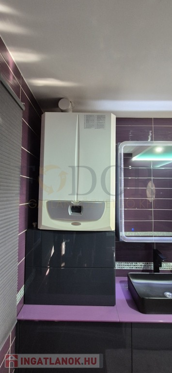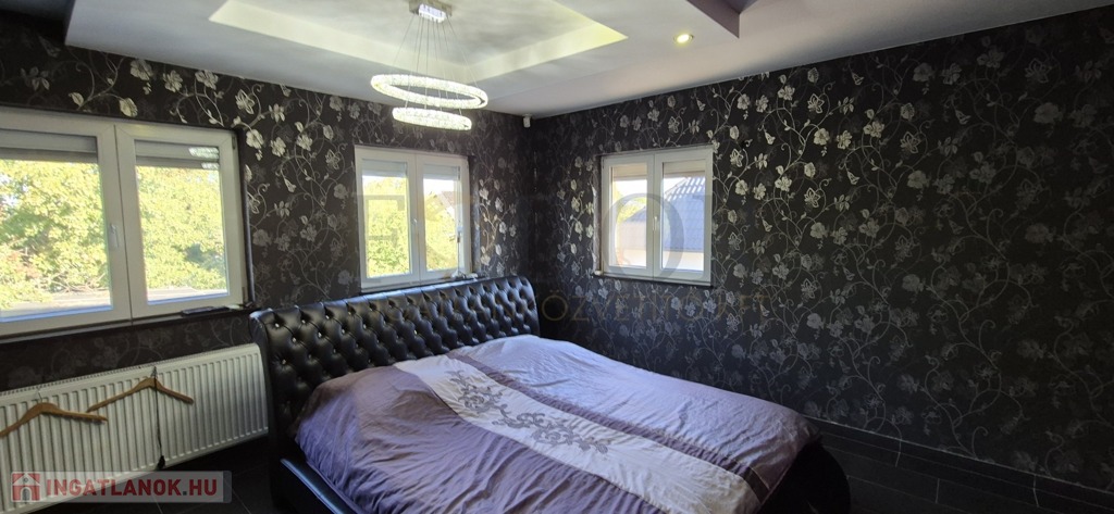A földszinten tágas nappali, étkezős konyha, fürdőszoba WC-vel (egy légtérben), az emeleten két különnyíló szoba, valamint francia erkély található. A tetőtér nem beépíthető, de a lakótér így is kényelmes, jól kihasználható. A fűtésről gázcirkó, a hűtésről Gree klíma gondoskodik, a ház 10 cm-es külső szigeteléssel ellátott, minden nyílászárón redőny található. Riasztórendszer és elektromos kapu is beépített.
