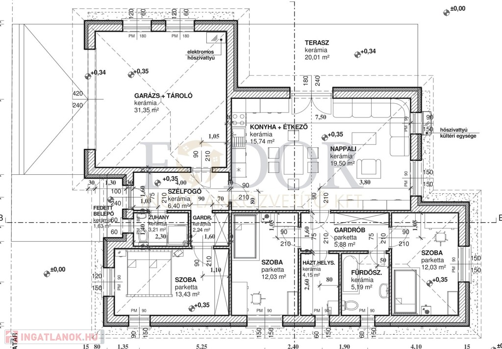 Hasznos alapterülete: 99,8 m² + 31,36 m² garázs-tároló, valamint egy 20 m²-es terasz egészíti ki a kényelmes életteret.