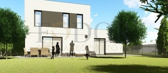 A ház egy osztatlan közös telken épül, ügyvédi használati megosztással, külön közműórákkal és teljesen szeparált bejáratokkal.