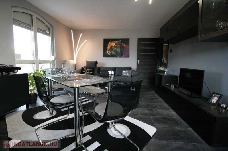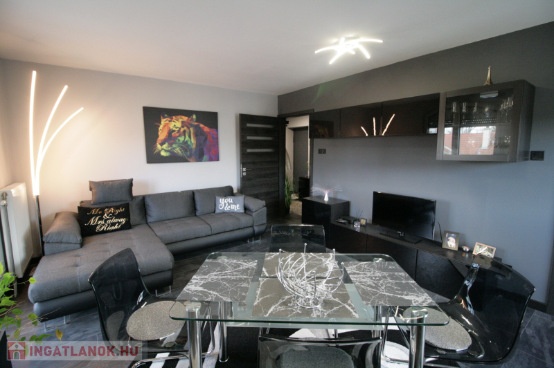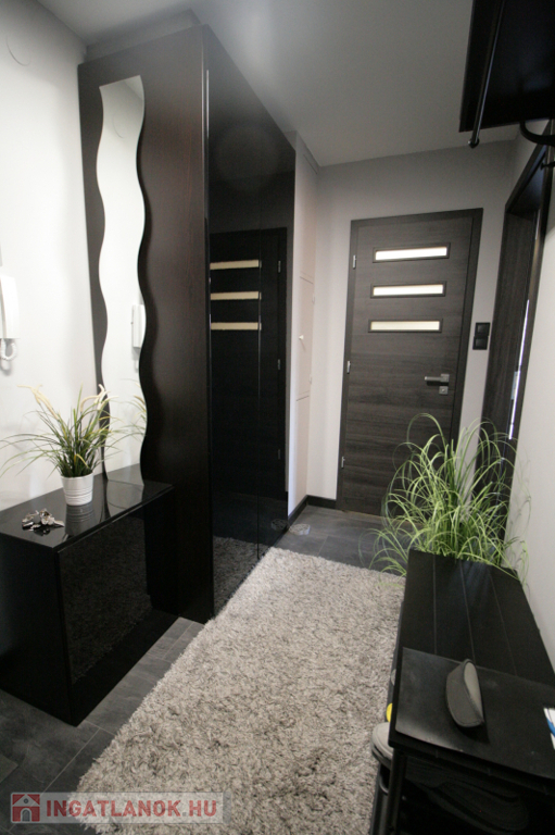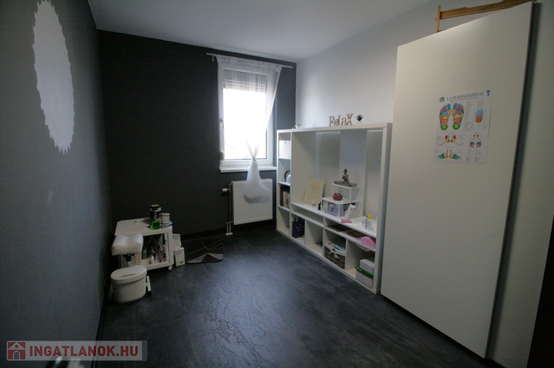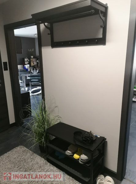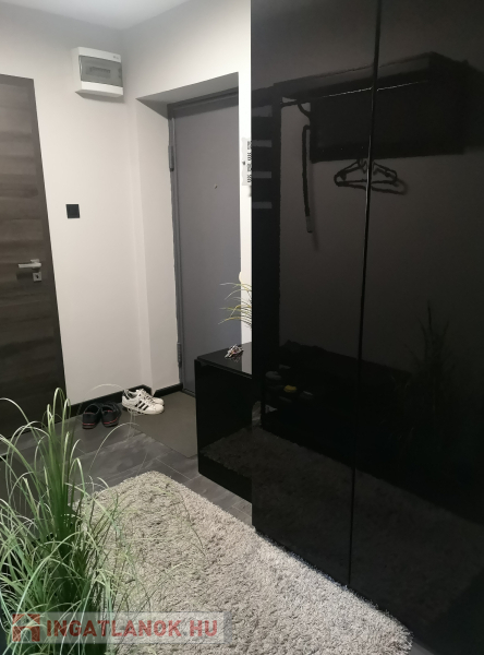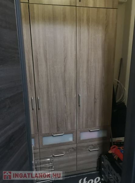 Beépített , gépesített konyhabútor. Beépített szekrények az előszobában és a tárolóban. A fotókon szereplő bútorok, berendezési tárgyak ajándék. Műanyag hő- és hangszigetelt homlokzati nyílászárók redőnyökkel, szúnyoghálókkal. Biztonsági bejárati ajtó.