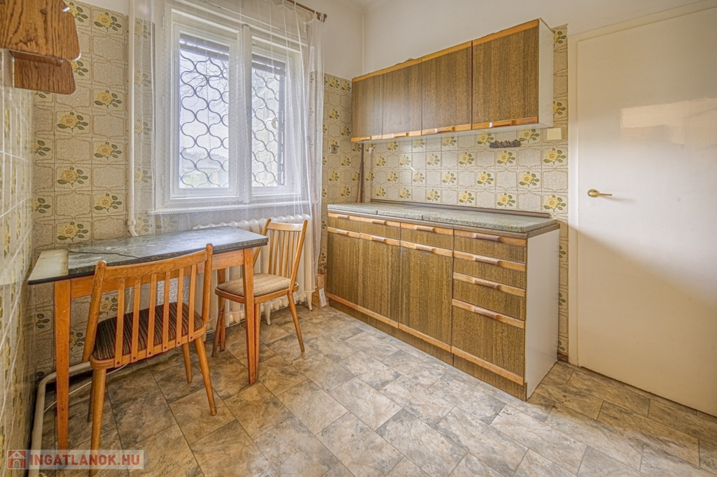 XVIII. kerület Lónyaitelepen szigetelt, szerkezetileg jó állapotban lévő, de belülről korszerűsítésre szoruló, 84 m2 nettó hasznos alapterületű + 11 m2 terasszal rendelkező, 3 szobás, külön fürdő-WC-s, jól alakítható családi ház 538 m2-es telken eladó. A belső elrendezés rugalmasan változtatható: a konyhából és a kamrából szobát lehet kialakítani, a fürdő az előtér irányába növelhető - akár többgyermekes család részére is kiváló választás lehet!
