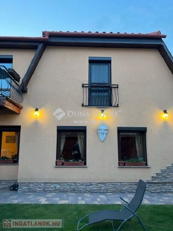 egy gyönyörű több generáció számára is alkalmas családi ház!A ház nagyon kellemes környezetben , kerti tó, kültéri Jacuzzi fedett grillterasz környezetében található.A rendezett udvarban több autó parkolására van lehetőség, a haza érkezőket elektromos kapu engedi be.A ház szerves részét képezi a már említett fedett grillterasz, mely mindenféle főzési , és sütési lehetőséget magában rejt, mert egy jól felszerelt konyha várja a szakácskodni vágyókat.Kellemes , szabadtéri időtöltés lehet , baráti társaságok fogadása, ezen a csodálatos környezetben.Az előszobából a házba belépve hatalmas terek szolgálják a kényelmünket.Kiemelném a fagerendás mennyezet szépségét, mely az alsószinten a helyiségeket jellemzi.A nappali mellett étkező és egy épített fatüzelésű , vízteres párkányra ülős kandalló növeli a komfort érzésünket.Innen a teljesen felszerelt, 2021.ben vásárolt kitűnő minőségű gépesített modern konyhába érkezünk .Tovább haladva egy háztartási helyiség ,két fürdőszoba és egy vendég szoba található, melyet ha elválasztanánk egy generáció lakhatására is alkalmassá lehet varázsolni.A zárt lépcsőházból az emeletre egy közlekedő folyosóra jutunk, ahonnan 3 szoba nyílik. A szobák mindegyikéből kitudunk jutni az emeleten épült teraszra.Ezen a szinten is található egy gyönyörű fürdőszoba.Az igényesen megépített Mediterrán stilúsú házból semmi sem hiányzik, minden adott, hogy az új tulajdonosa kellemes , igényes környezetben éljen.A közlekedés kitűnő, iskola , óvoda, bevásárlási lehetőség a közelben.Ha felkeltettem az érdeklődését, kérem hívjon , hogy megmutathassam ezt a gyönyörű, vonzó ingatlant.