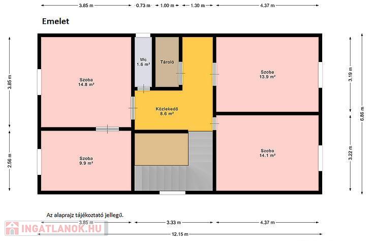 Az ingatlan tégla falazattal, beton alappal és beton födémmel épült, jó elosztású, AMERIKAI KONYHÁS NAPPALIVAL, TERASSZAL ÉS 40 NM-ES PINCÉVEL.