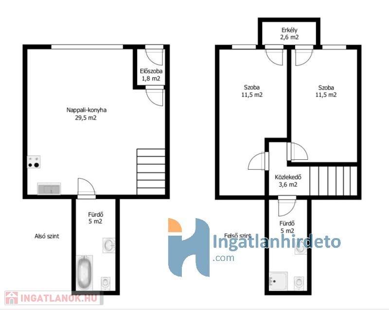 - dupla fürdőszoba káddal és zuhanyzóval