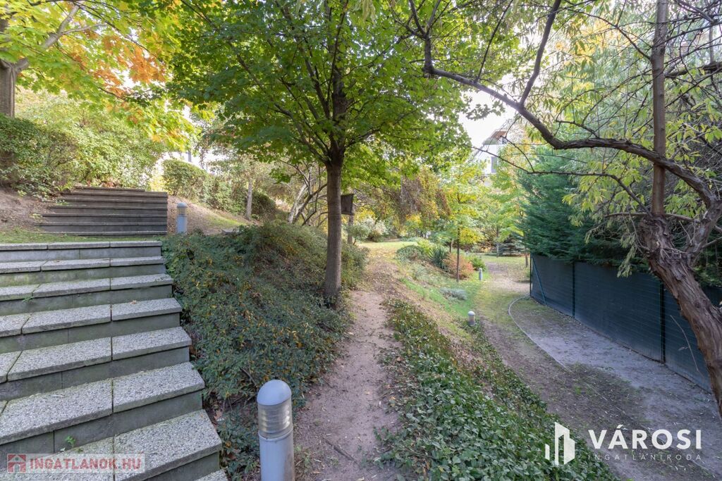 A kertvárosi jelleget a társasház hatalmas, több szintes, zárt, szépen parkosított udvara adja, ahol sétányok, padok és játszótér is várja a lakókat.