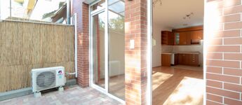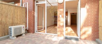 Thanks to its southwest orientation, the living room, terrace, and small garden are bright and sunny, while the Gree-type air conditioner ensures a pleasant indoor temperature.