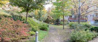 The suburban character is enhanced by the condominium’s large, multi-level, enclosed, beautifully landscaped courtyard, where residents can enjoy walking paths, benches, and a playground.