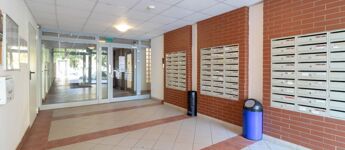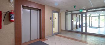 The apartment is located on the ground floor of a modern, brick-built condominium from 2008, which is quiet, clean, well-maintained, and equipped with an elevator and a closed staircase.
