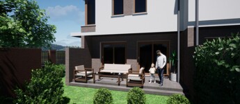 A 100 m²-es, belső két szintes ingatlan 20 m²-es terasszal, 80 m²-es udvari és 20 m²-es utcafronti kertkapcsolattal, valamint saját kocsibeállóval rendelkezik.